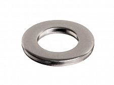 - Шайба плоская – представляет собой плоское металлическое кольцо толщиной от 0,3 до 3 мм, у усиленных изделий она может достигать 10 мм. Основное предназначение таких элементов состоит в увеличении площади опоры крепежа к поверхности. Особенностью усиленных изделий является увеличенный наружный диаметр, по сравнению с внутренним, поэтому площадь соприкосновения с поверхностью у них больше, чем у обычных плоских шайб.